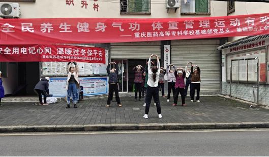 基础部体育教研室老师在沙子镇沙子村指导村民学习体育保健操