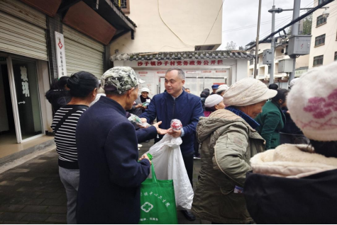 基础部伍彬副主任一行走访慰问沙子镇贫困户,送去慰问品并亲切交流