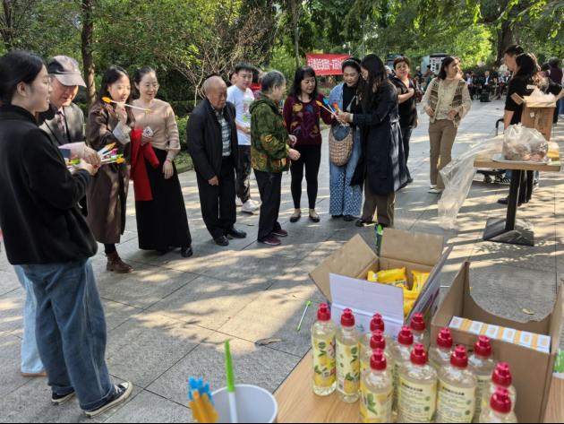 活动围绕老年人需求和节日氛围精心设计。老年交响乐队现场奏响经典旋律,熟悉的乐曲引发在场老年人共鸣,营造出温馨雅致的氛围;公益理发摊位前,志愿者耐心询问老年人发型需求,细致修剪头发,让老年人们以清爽造型迎接重阳佳节;礼品套圈、飞箭投壶等趣味互动游戏备受青睐,老年人们排队积极参与,在投掷与欢笑中重拾童年乐趣,成功通关者还收获了实用小礼品,脸上洋溢着幸福笑容。