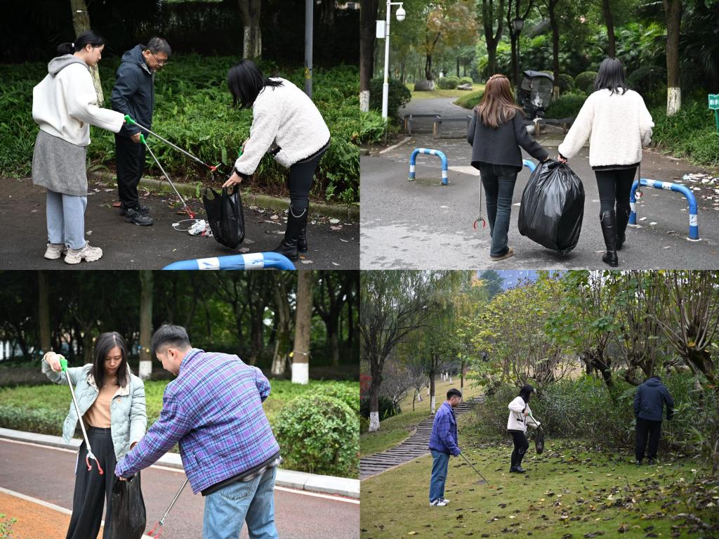 为深入践行生态文明理念,充分发挥党员先锋模范作用,12月4日,继续教育学院党支部组织全体党员赴重庆市大学城青年广场公园,开展“清洁公园 美化家园”主题志愿服务活动。活动以“聚焦环境整治、强化责任担当”为核心,重点针对公园步道、草坪及湖畔区域的垃圾进行集中清理,用实际行动为提升园区生态环境、助力城市文明建设注入红色动能。