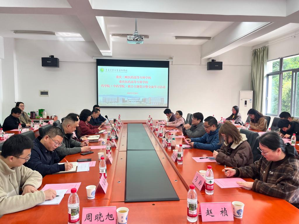 为深化校际党建共建、推动教学科研协同发展,3月26日,重庆三峡医药高等专科学校药学院党总支书记董江峡、副院长蔡兴东等一行18人到访我校,与我校药学院联合开展主题党日暨交流学习活动。我校药学院(中药学院)党政领导、各教研室主任、骨干教师代表参会,活动由唐倩主持。