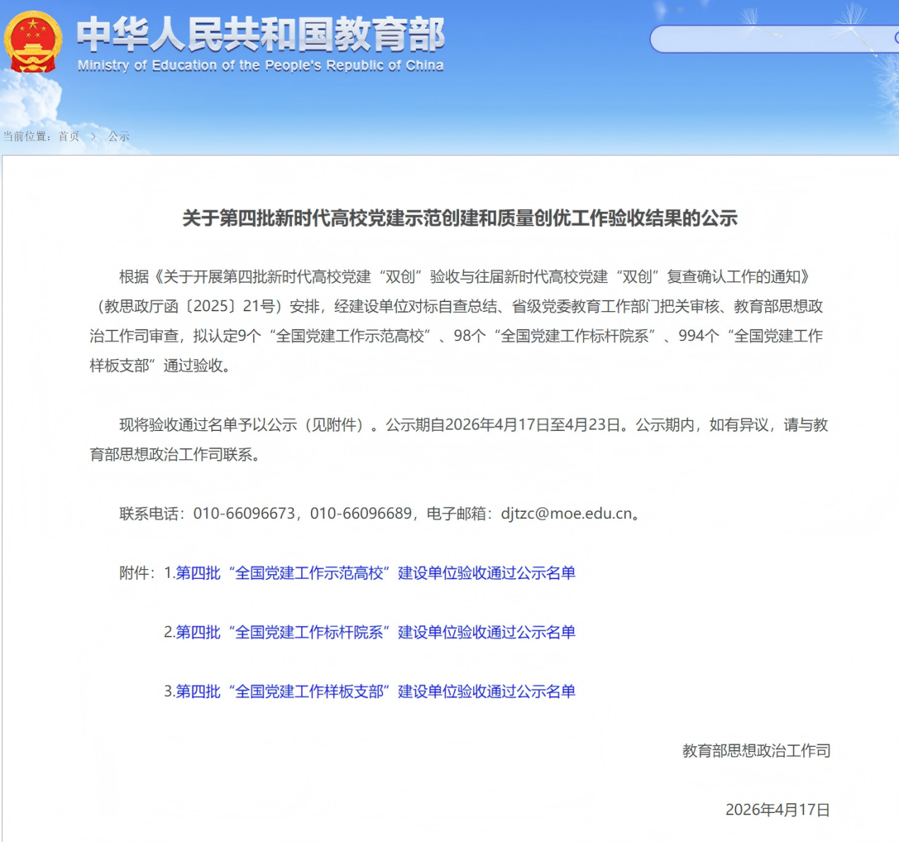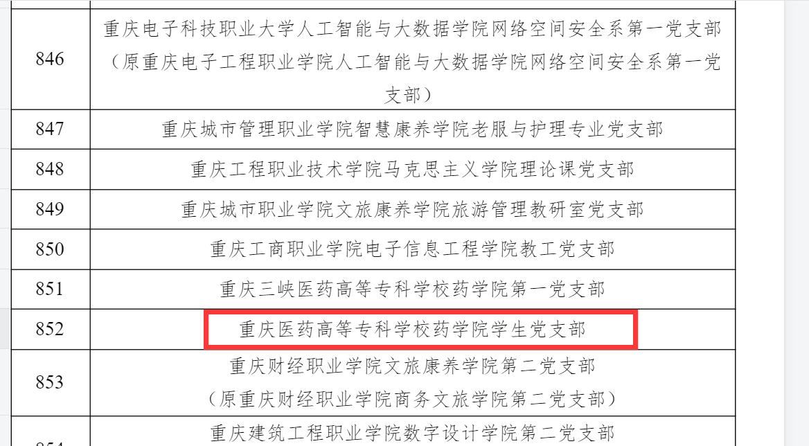 近日,教育部官网对第四批新时代高校党建示范创建和质量创优工作验收结果进行了公示。经重庆市教育工作部门把关审核、教育部思想政治工作司审查,我校药学院(中药学院)学生党支部“全国党建工作样板支部”拟顺利通过验收。
